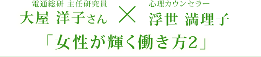 仕事とは、単なる生活の糧を得る手段ではなく、自分の魅力を発揮し、気が付かなかった力を引き出し、自分を大きく成長させ、輝かせる最高のステージになります。 大きなプロジェクトを成功させ、ベストセラーを生み出した大屋洋子さんをお迎えし輝く女性の生き方についてご講演をいただきます。 時代の波の中で、しっかりと自分自身の生き方を見つけ、うわべに惑わされない確かな視線で人生を歩んできた輝く女性である大屋洋子さんと、多くの女性の「自分らしい生き方」をサポートし続けてきた心理カウンセラー浮世満理子のトークライブからは、きっと自分のための輝く人生を手に入れる多くのヒントを得ることができます。